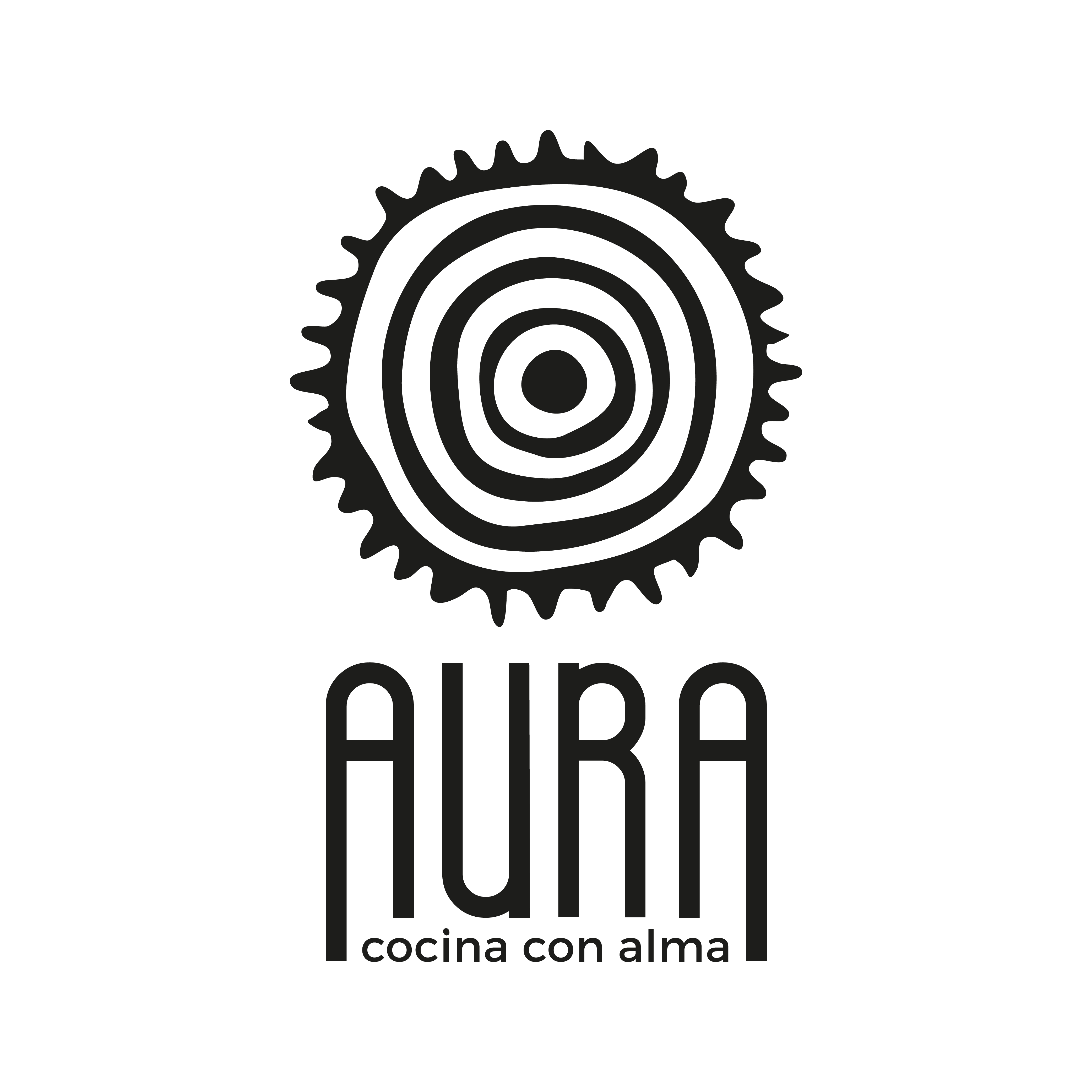 Diseño de imagen corporativa para restaurante de cocina ecuatoriana del Chef Quique Sempere. El isotipo representa no solo las diferentes capas que tiene el aura o campo energético que rodea a las personas. También representa un fogón de cocina y el enfoque hacia lo esencial, una mirada hacia el interior.
